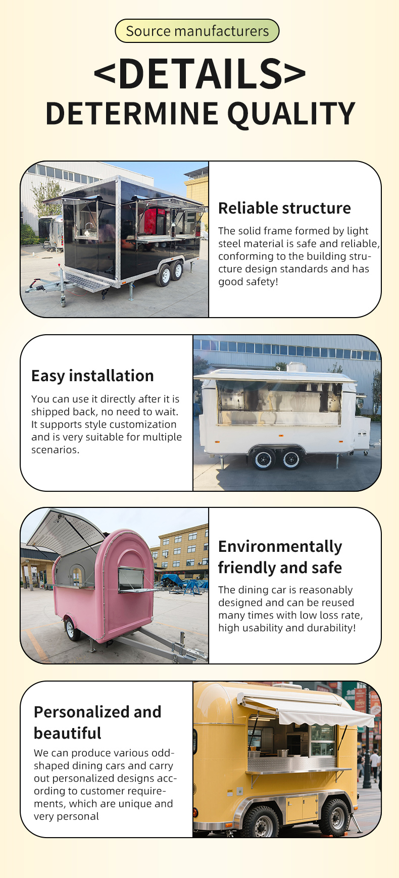 3. Ultra-low threshold: The cost is only 1/3 of that of traditional restaurants, providing a full range of services from vehicle customization, brand design to site selection support
